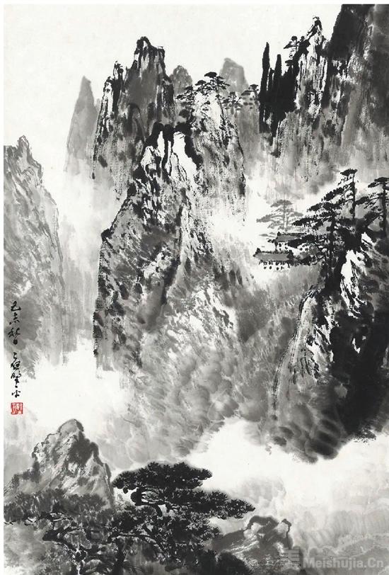 应野平 黄山奇峰 68×46cm 纸本水墨 1979年