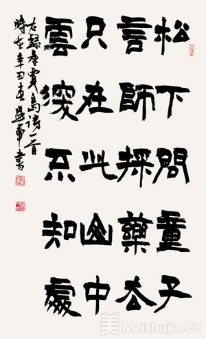 盛军是当代实力派书法家、篆刻家、艺术评论家,从艺时间久,艺术感觉好,磨练功夫深,所取得的创作成就自然大。在书法、篆刻领域,他展现了较高的艺术才能,楷书、行草、篆隶兼擅,工稳的朱文印、抒情的写意印均有拿手的作品。